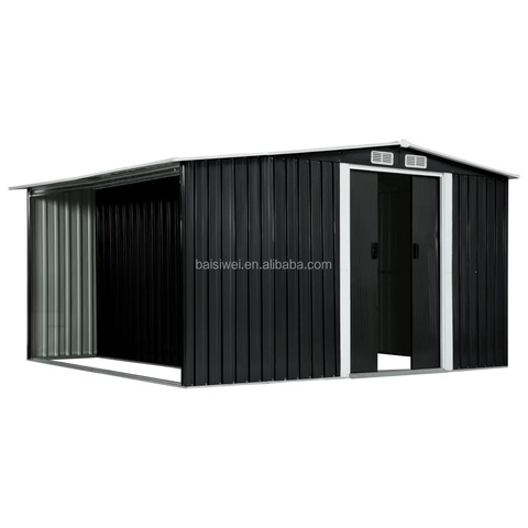 ที่มีคุณภาพสูงกรอบโลหะจัดเก็บกลางแจ้งเพิงห้องเครื่องมือที่มีประตูบานเลื่อนสนามหลังบ้านเพิง